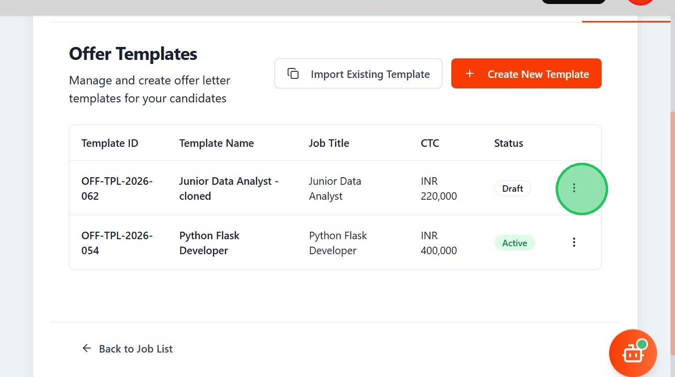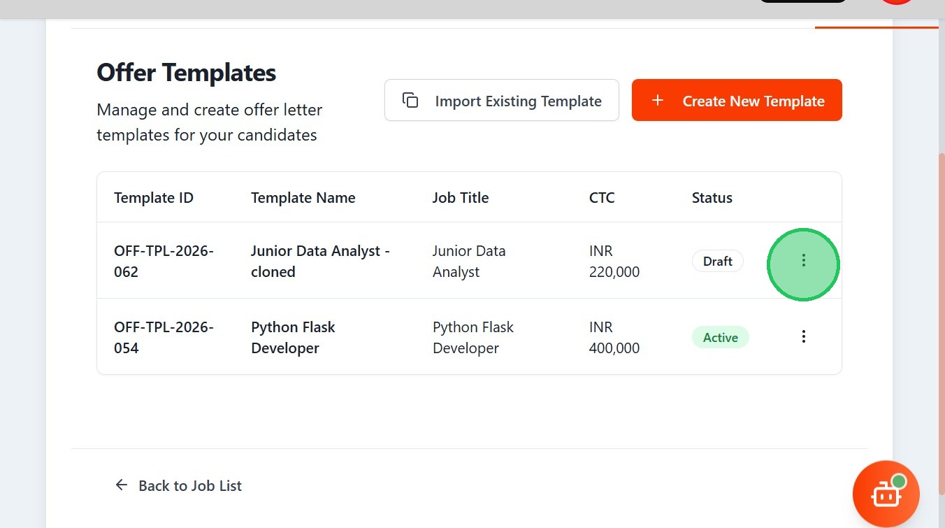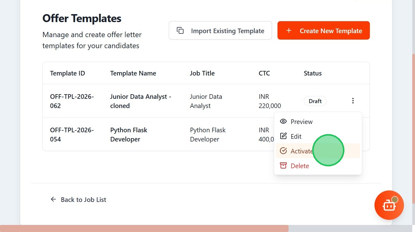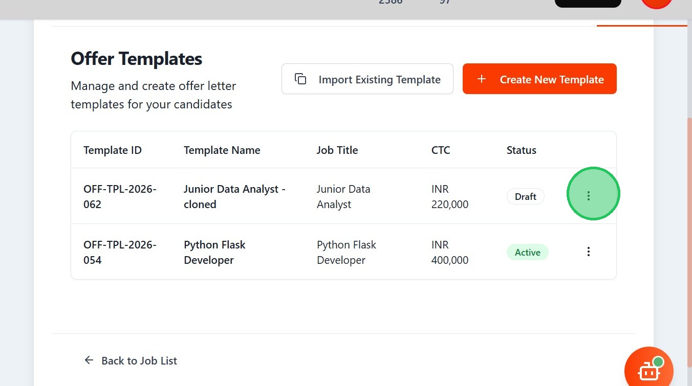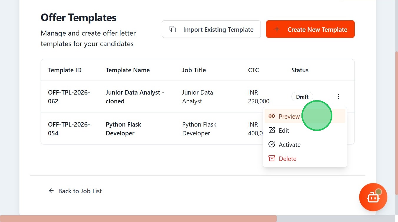 - Click "Offer TemplatesManage and create offer letter templates for your candidatesImport Existing TemplateCreate New TemplateTemplate IDTemplate NameJo..."