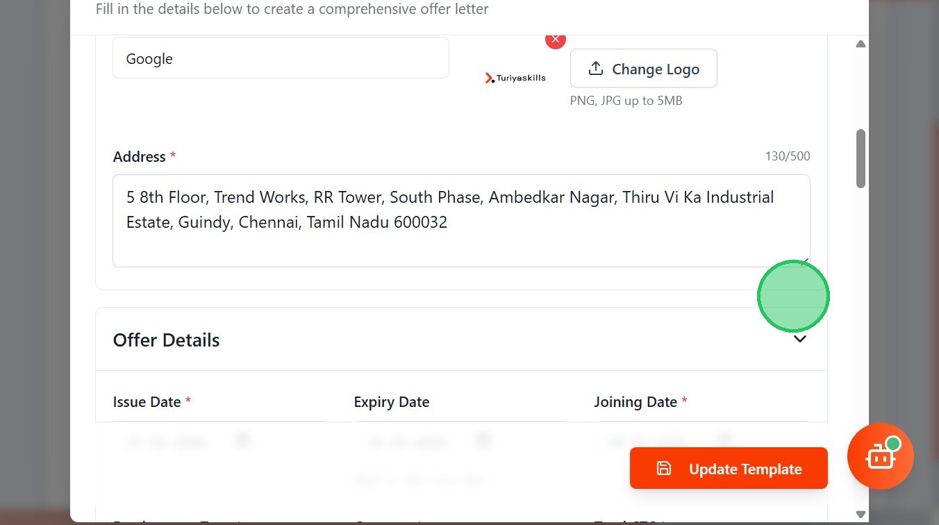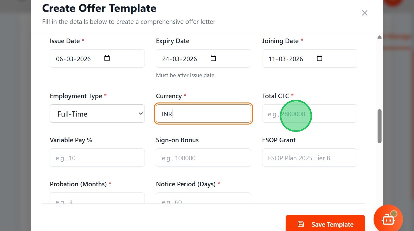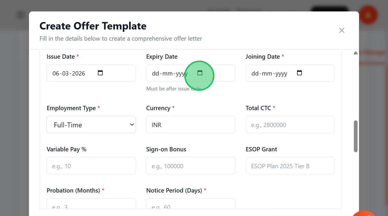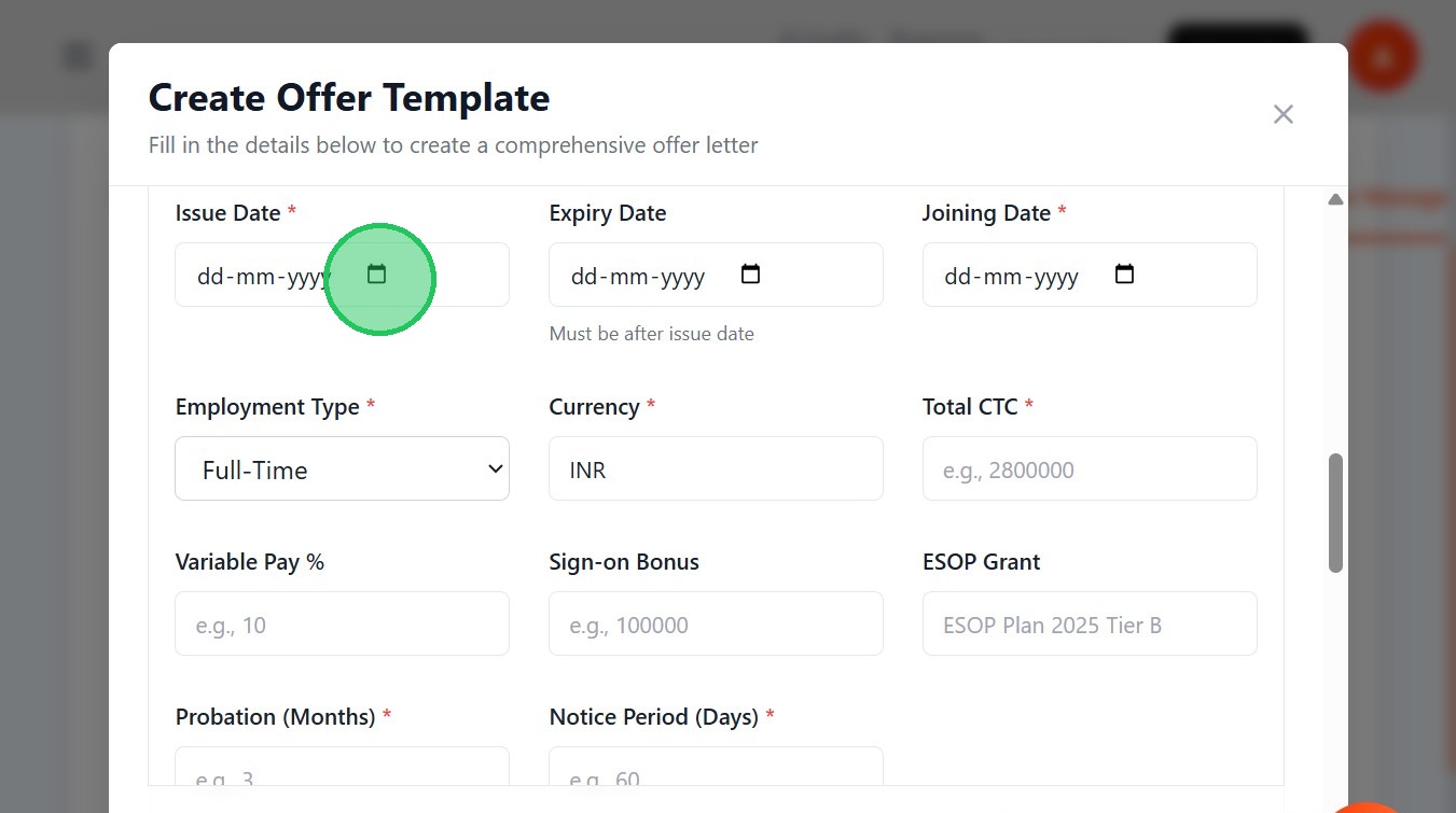 - Mention the Joining Date of the candidate